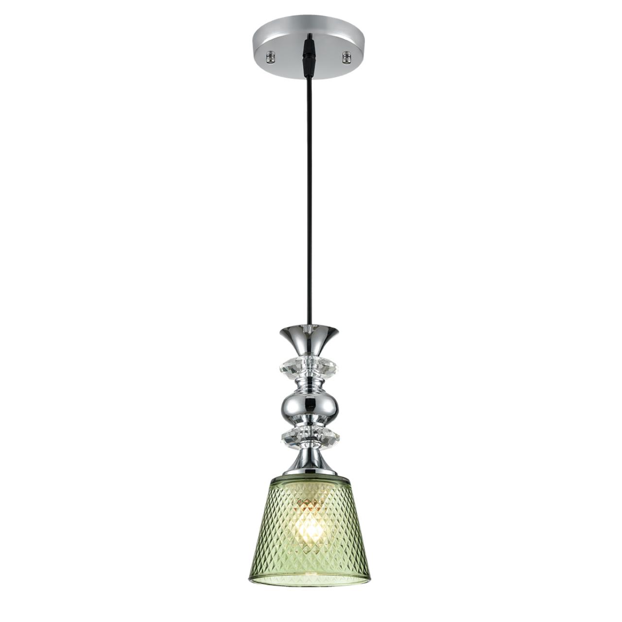 Серия соло-подвесов MANOLA подходит для помещений в классическом стиле. Сложное наборное основание из прозрачных и хромовых элементов украшает светильник. Цветное стекло плафона имеет гладкую наружную поверхность и ребристую внутри. Актуальная цветовая гамма - зеленый, розовый, прозрачный - позволяет добавить цветового акцента в интерьер.