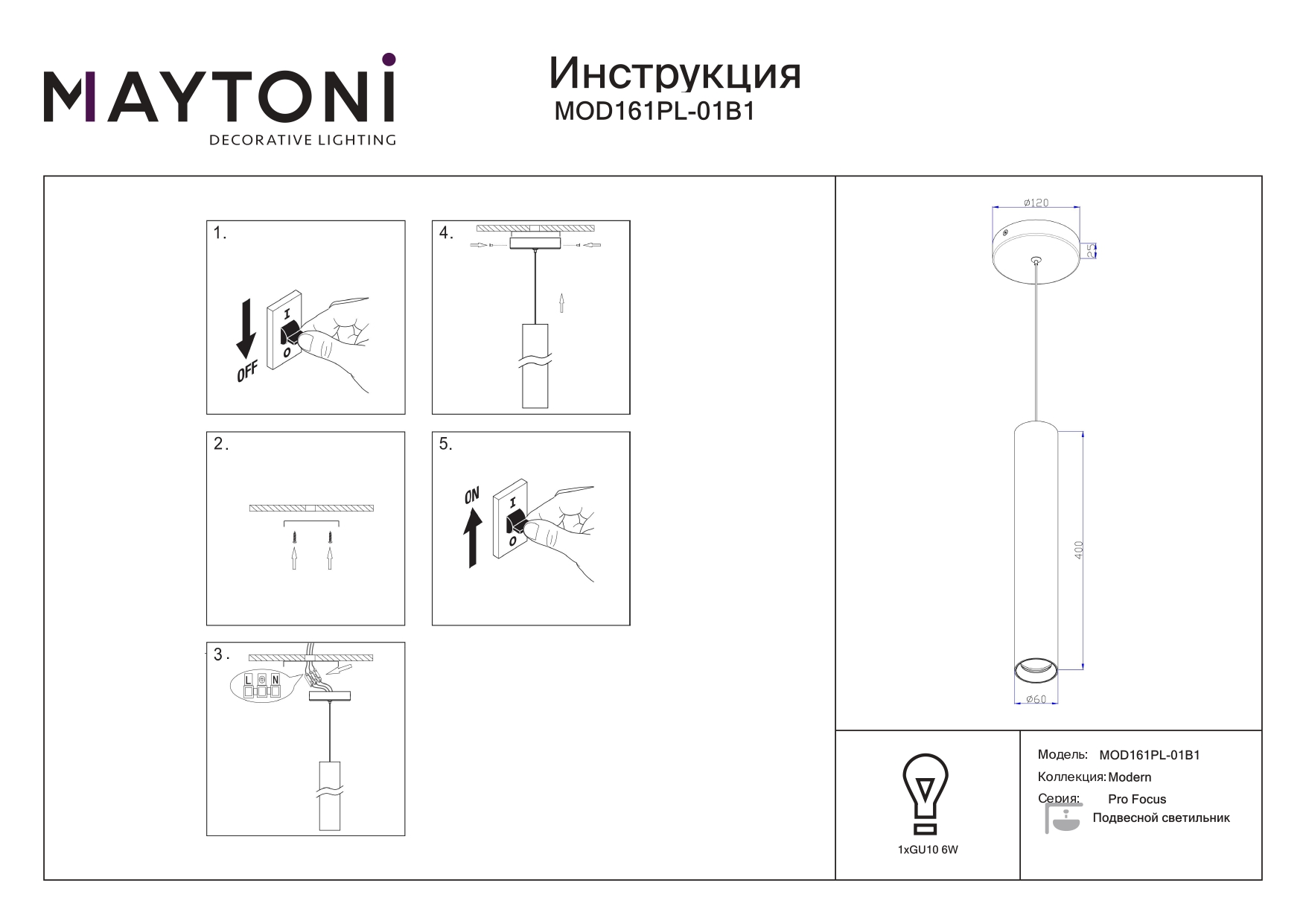 Данную модель MOD161PL-01B1 с быстрой доставкой спешите купить по цене 5 030 ₽ в магазине 220svet.ru