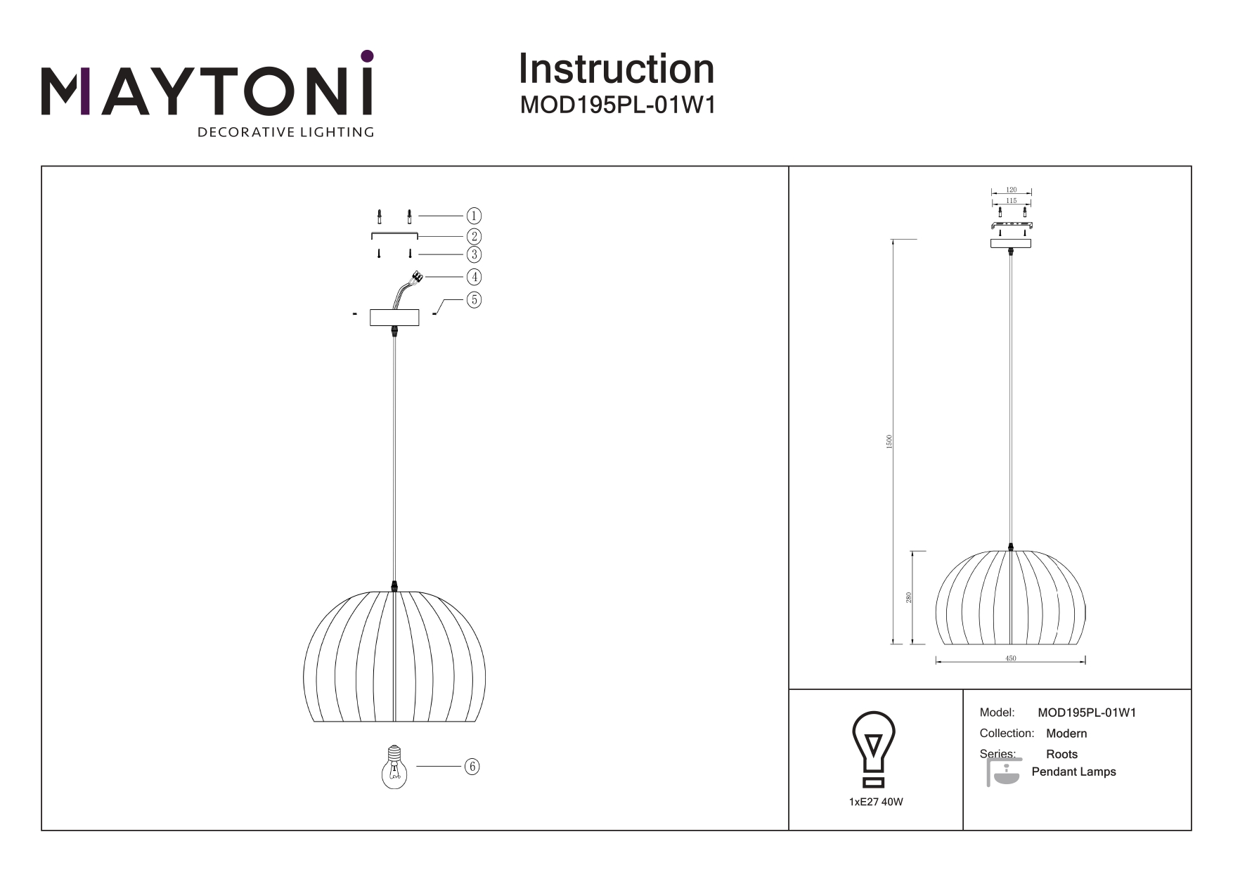 Купить "Подвесной светильник Maytoni Roots MOD195PL-01W1"