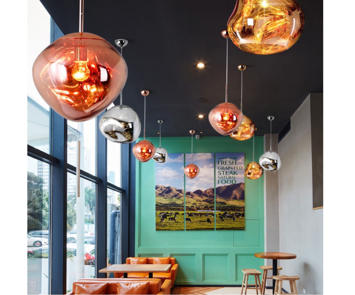 Завораживающая своей магической красотой модель подвесного светильника TH7544/1G40, словно золотая капля подвижной расплавленной лавы, зависла под потолком. А продолжением уникальной формы плафона является гармонично подобранная металлическая арматура в золотом цвете. Дизайнеры китайской фабрики Lightday, работая над коллекцией «Шар из лавы», не случайно решили использовать плафоны из выдувного стекла, ведь именно они уже очень давно являются яркими, стильными элементами декорирования интерьеров. Оригинальность данного светильника заключается еще и в том, что внешний вид его меняется в зависимости от выбранного режима работы. Полупрозрачные цветные плафоны во время включения света и матовые шары с зеркальным эффектом после выключения способны украсить интерьер как гостиной, кабинета, кухни, так и стать ярким акцентом в оформлении бара, ресторана, фитнес клуба, отеля, развлекательного центра. Производитель рекомендует использовать для устройства светодиодные лампы с цоколем E27 и мощностью 40 W, что позволяет осветить пространство площадью 5 м.кв. В коллекции «Шар из лавы» представлены светильники в трех цветах – золотой, серебряный и красный, каждый из которых в свою очередь можно заказать в трех размерах, а именно 20смх20см, 28смх27см, 40смх50см. Подобное цветовое и размерное решение позволяет использовать светильник TH7544/1G40 как отдельно висящий элемент освещения, так и объединить несколько вместе, подбирая разные цвета и размеры, тем самым создавая более насыщенную яркую атмосферу в вашем интерьере. Обратите внимание, что провод, на котором подвешен световой прибор, выполнен из светлого материала, что добавляет в восприятие всего пространства легкой воздушности и создает эффект замедленного движения в падении. Кроме того, данный тип подвеса позволяет вам в пределах 1 метра регулировать высоту расположения светильника. При сочетании разных размеров, цветов плафонов, а также разной высоты подвеса, создается иллюзия, что потолок украшен магическим ожерельем из капель расплавленной лавы, добавляя вашему пространству яркости, свежести и уюта. Интернет-магазин 220svet.ru рад предложить нашим покупателям самые выгодные условия для покупки подвесного светильника «Шар из лавы» TH7544/1G40. Мы работаем для того, чтобы вы каждый день наслаждались всем, что заставляет ваш интерьер сиять! Торопитесь сделать заказ в интернет-магазине 220svet.ru!