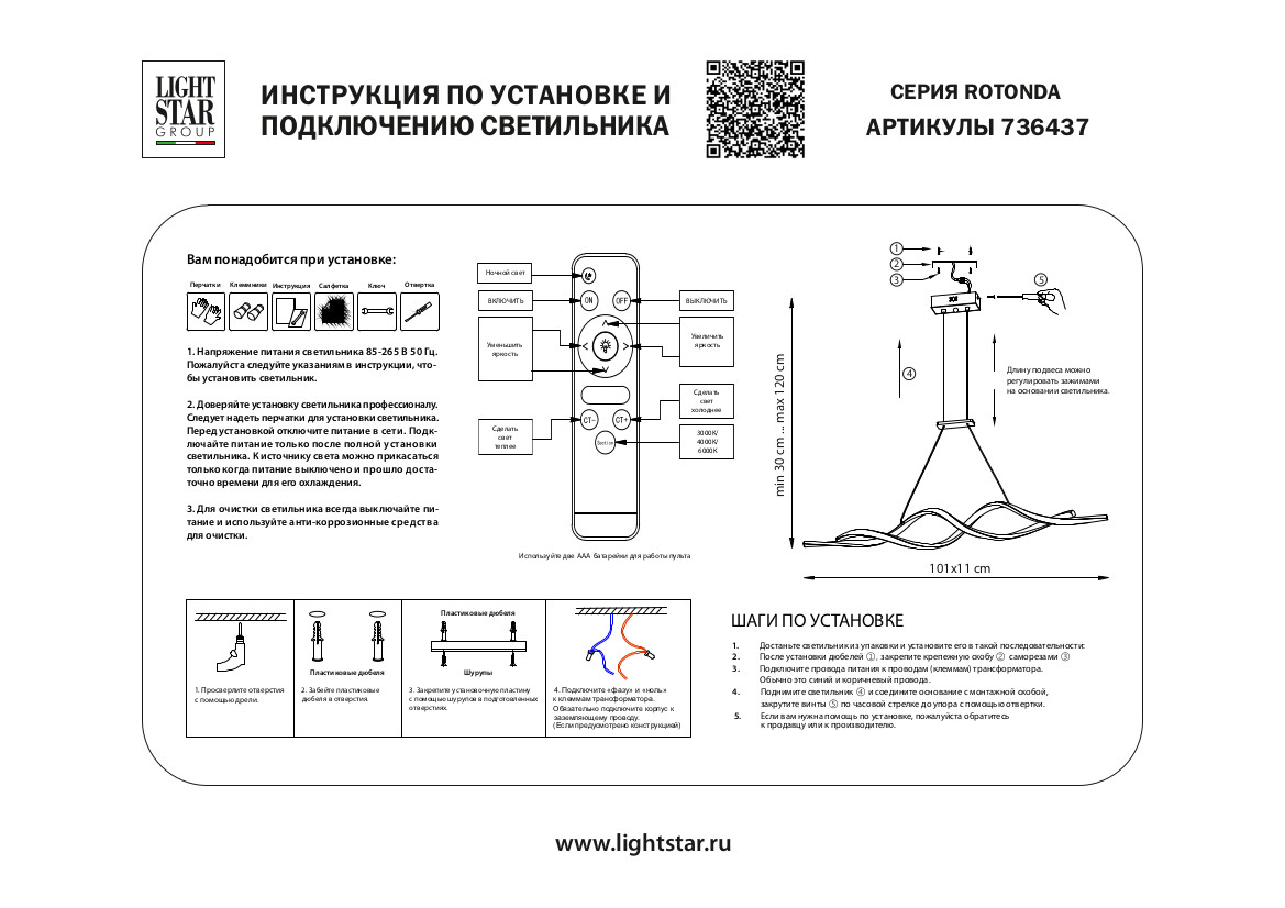 - Цветовая температура, K: 3000-6000