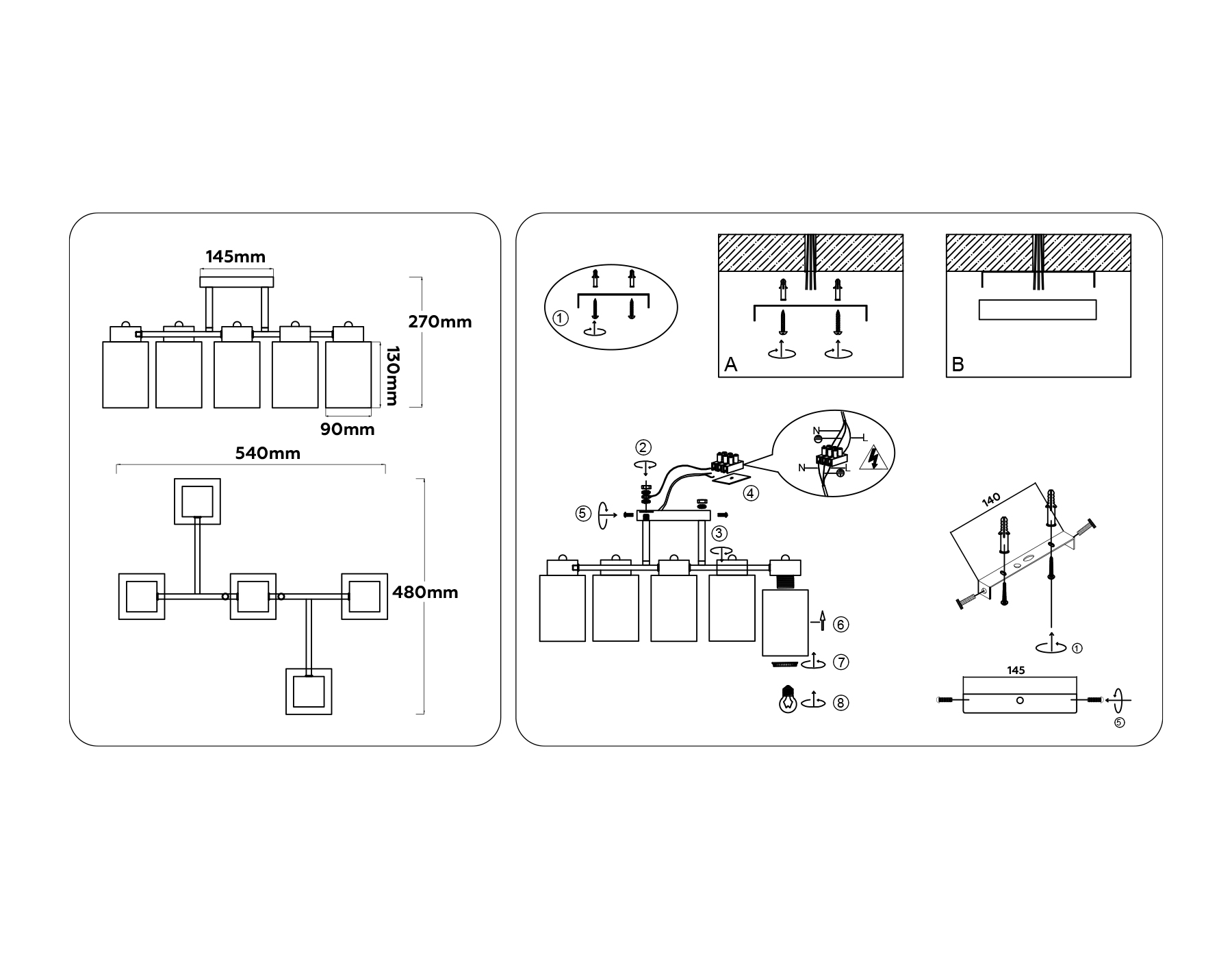 - Количество ламп: 5 шт