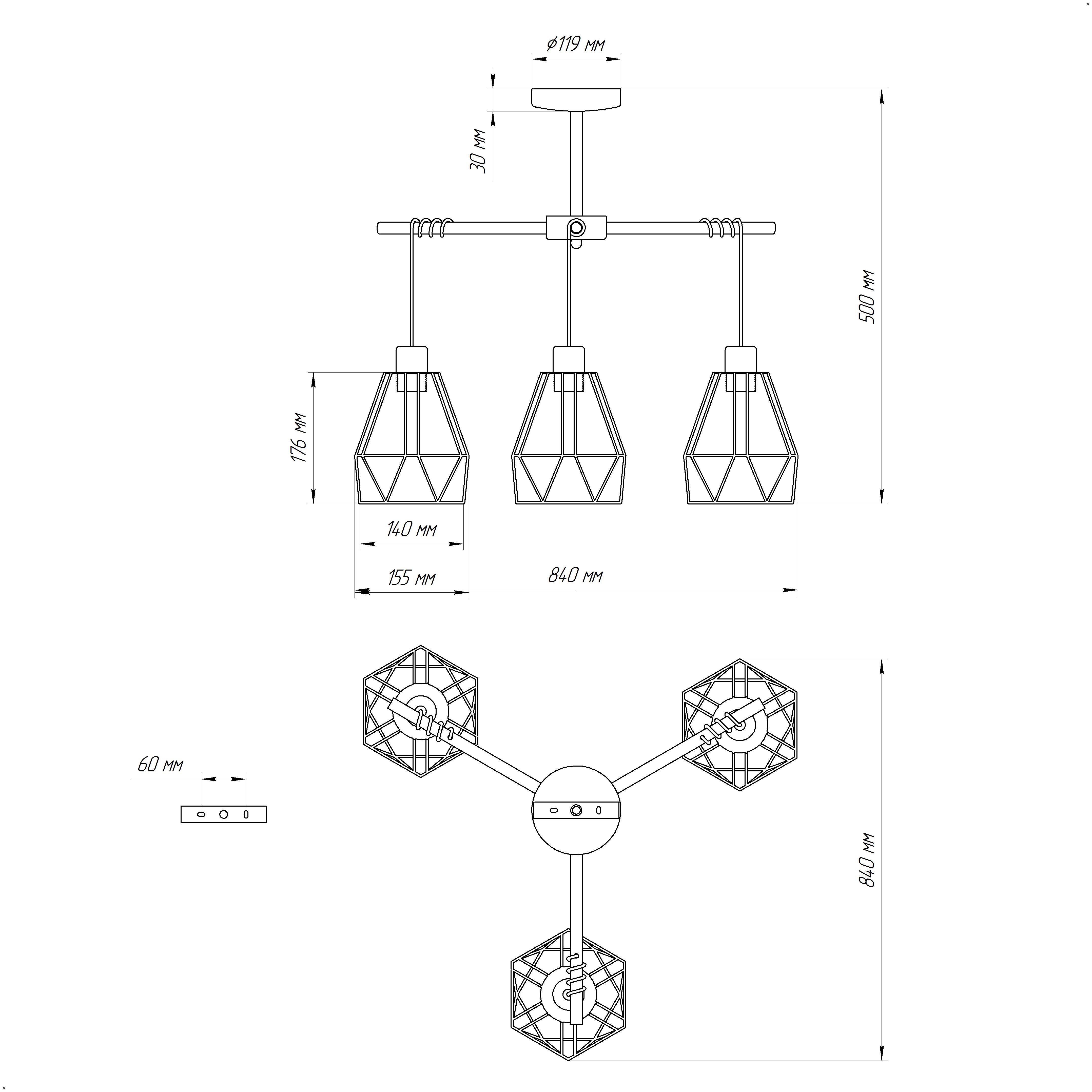 - Количество ламп: 3 шт
