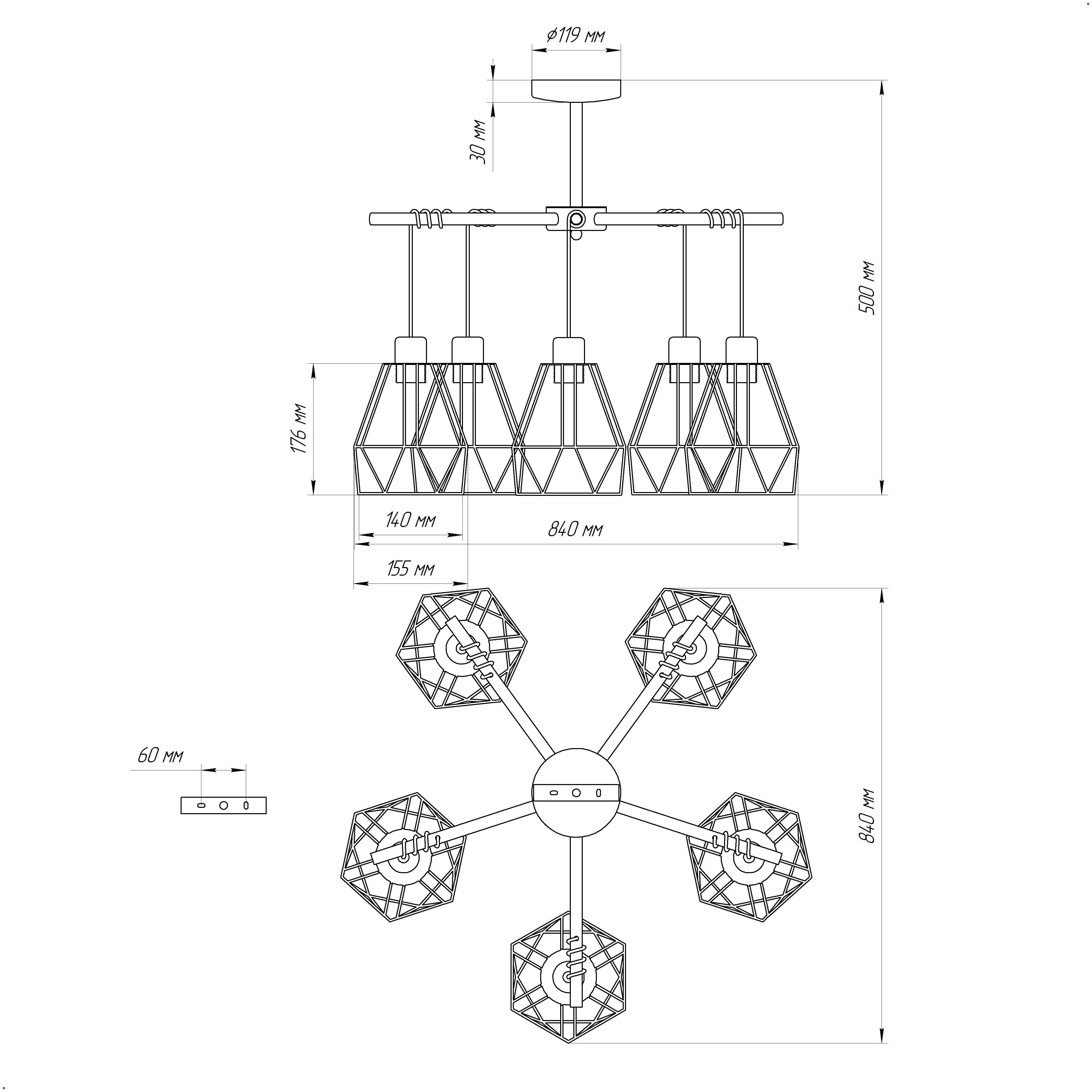 - Цвет плафонов: Черный