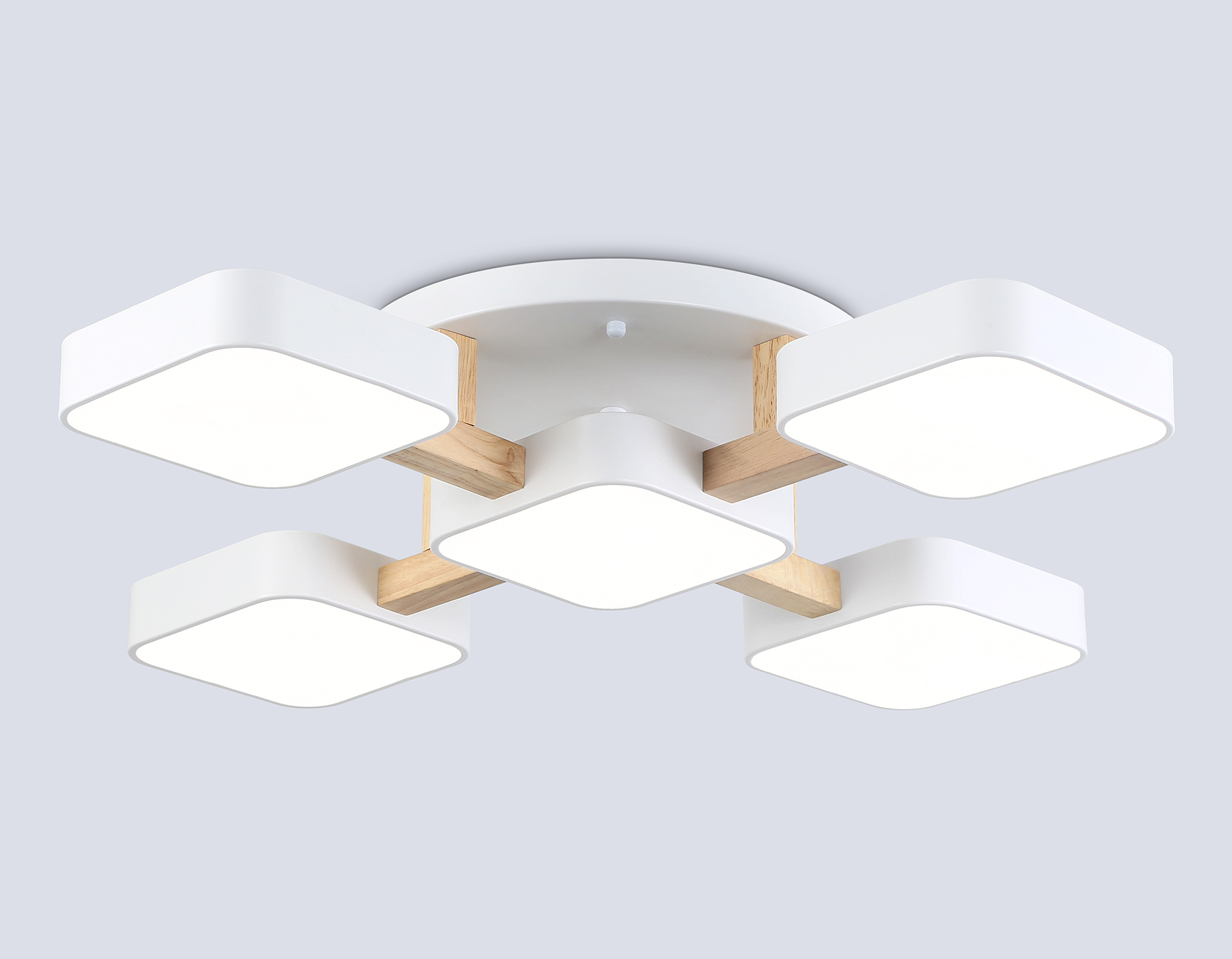 Подвесной светодиодный светильник, коллекция COMFORT. Модель FL4881 представлена в современном стиле хай-тек, техно. Светильник выполнен из металла и дерева. Модель оснащена встроенными светодиодами, благодаря чему вы забудете о замене дополнительных ламп. Данная модель подходит для натяжных потолков и будет прекрасным дополнением в любом помещении. FL4881/5 WH/WD белый/дерево 90W 3000-6000K 675*675*110 (без ПДУ) .Данную модель FL4881/5 WH/WD спешите купить с быстрой доставкой в магазине 220svet.ru