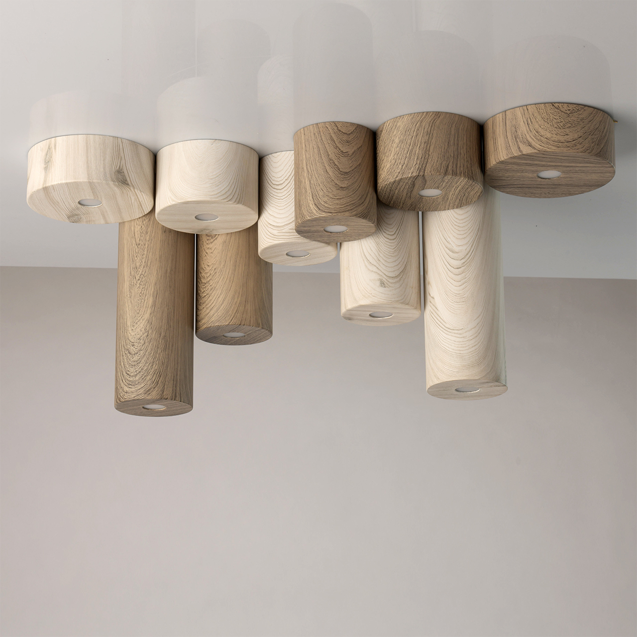 Основание светильника выполнено из металла, рисунок структуры белого дуба нанесён по технологии плёночного окрашивания. Светодиодный источник света типа COB закрыт рассеивателем из белого матового акрила.