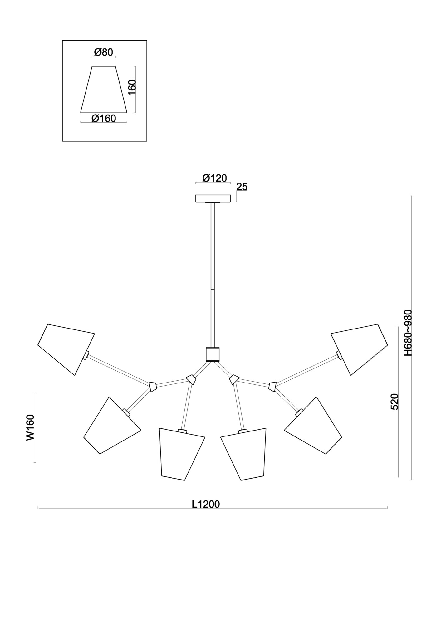 - Высота плафона (абажура): 160
