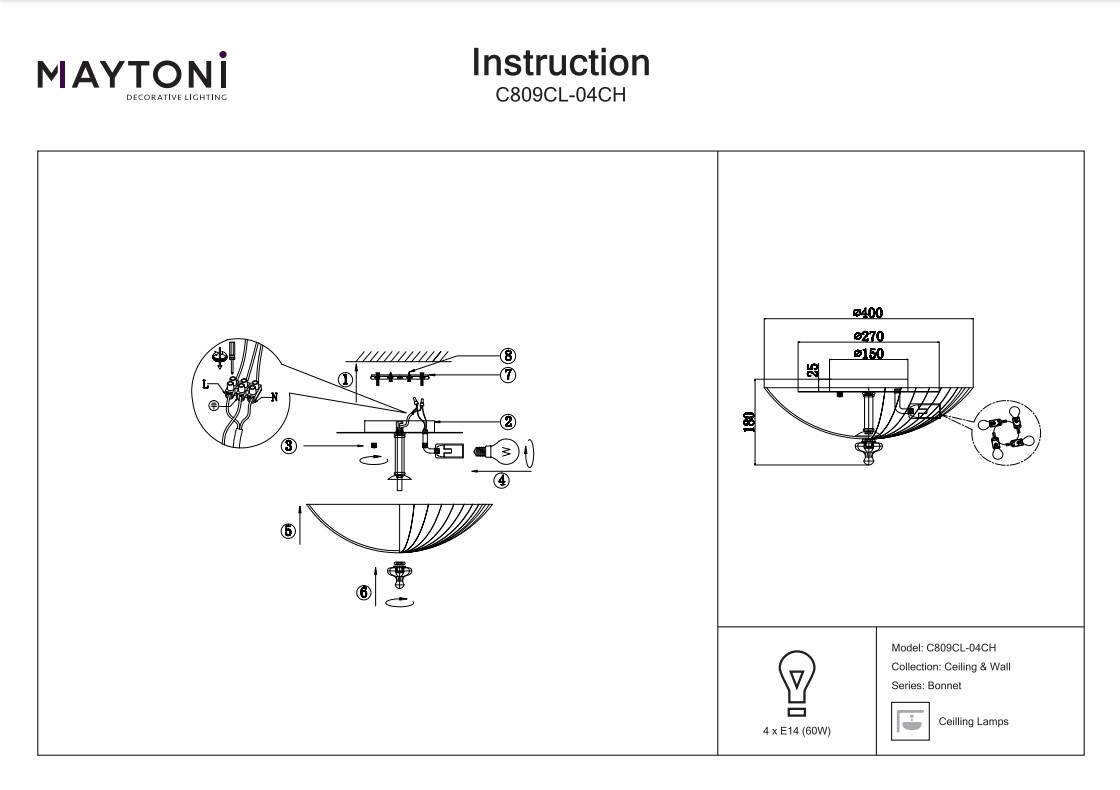 Потолочный светильник Maytoni Bonnet C809CL-04CH в новосибирске