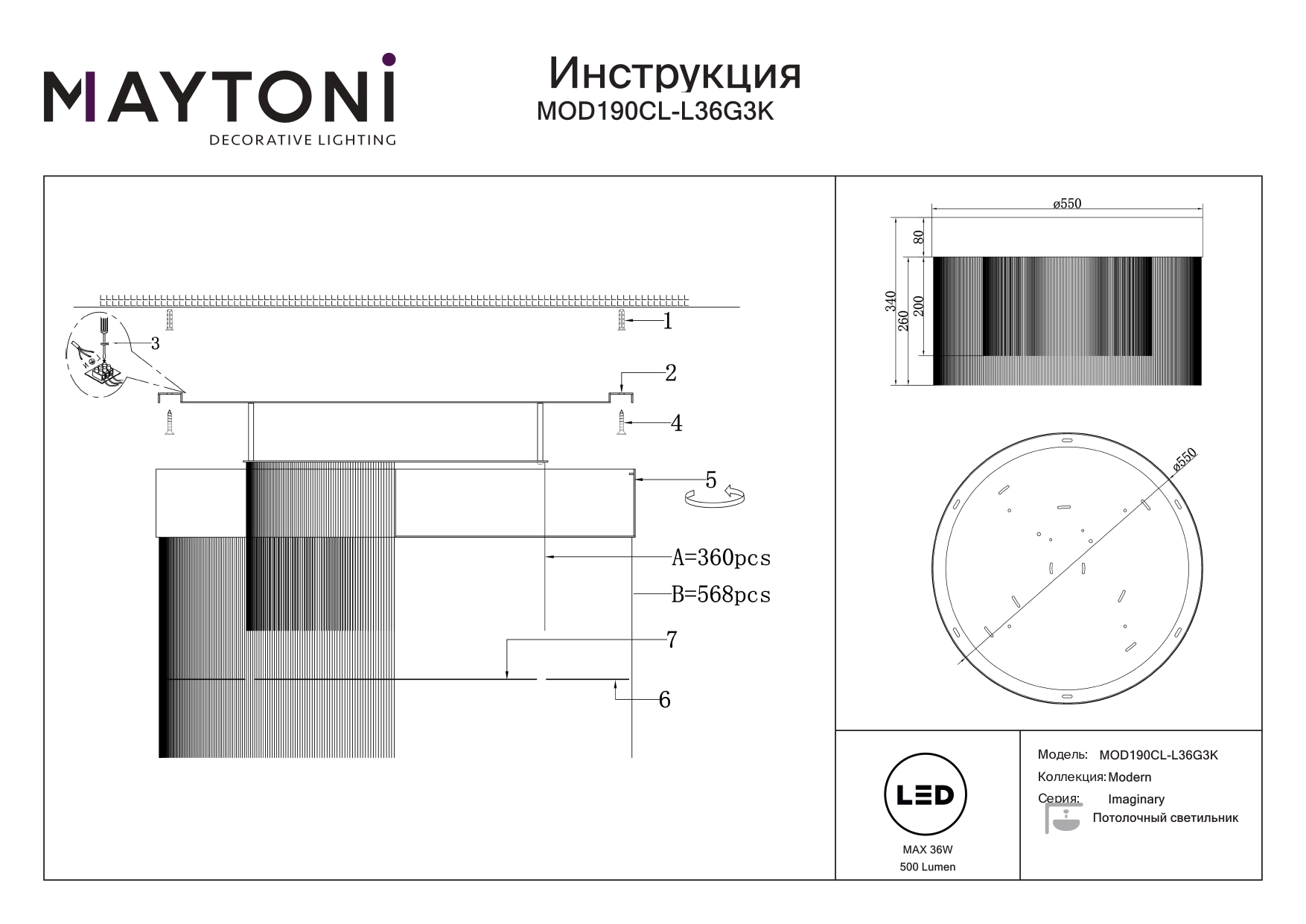 Данную модель MOD190CL-L36G3K с быстрой доставкой спешите купить по цене 53 490 ₽ в магазине 220svet.ru