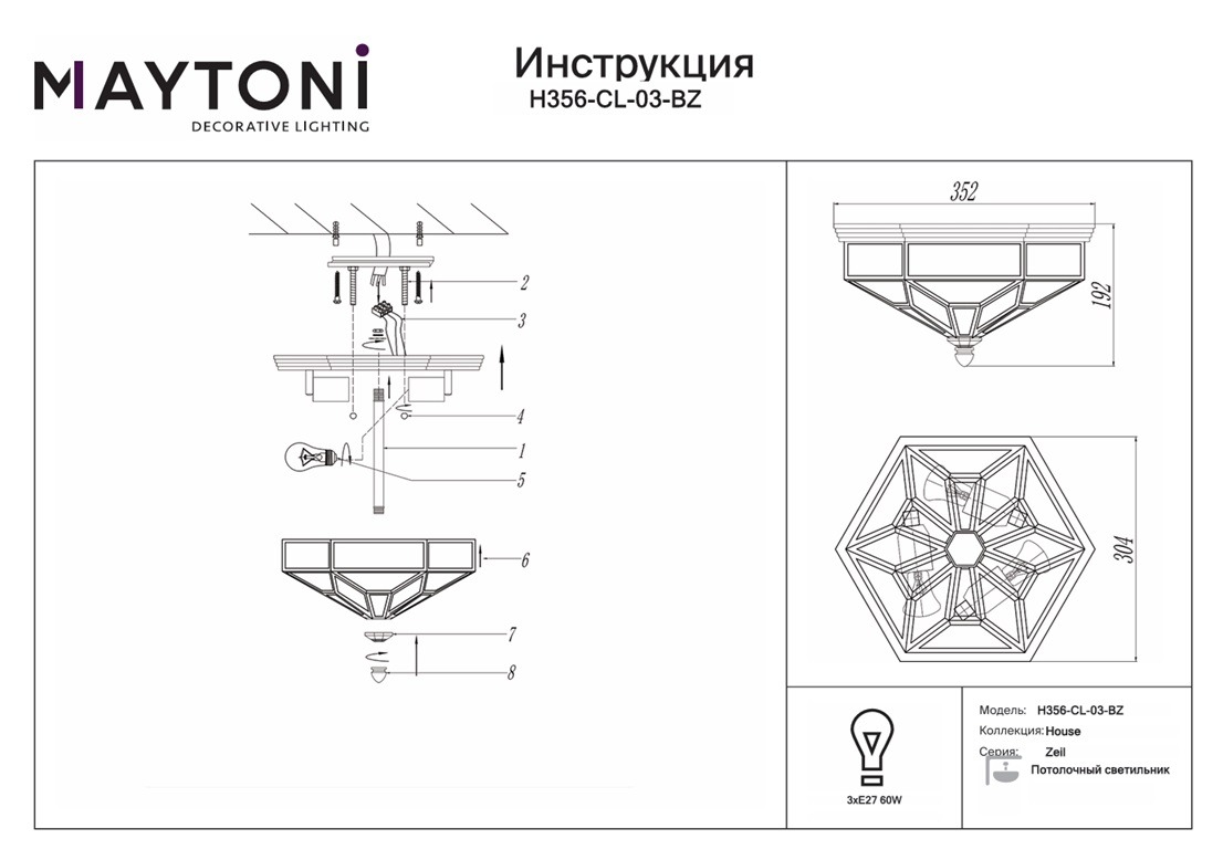 Данную модель H356-CL-03-BZ с быстрой доставкой спешите купить по цене 24 990 ₽ в магазине 220svet.ru