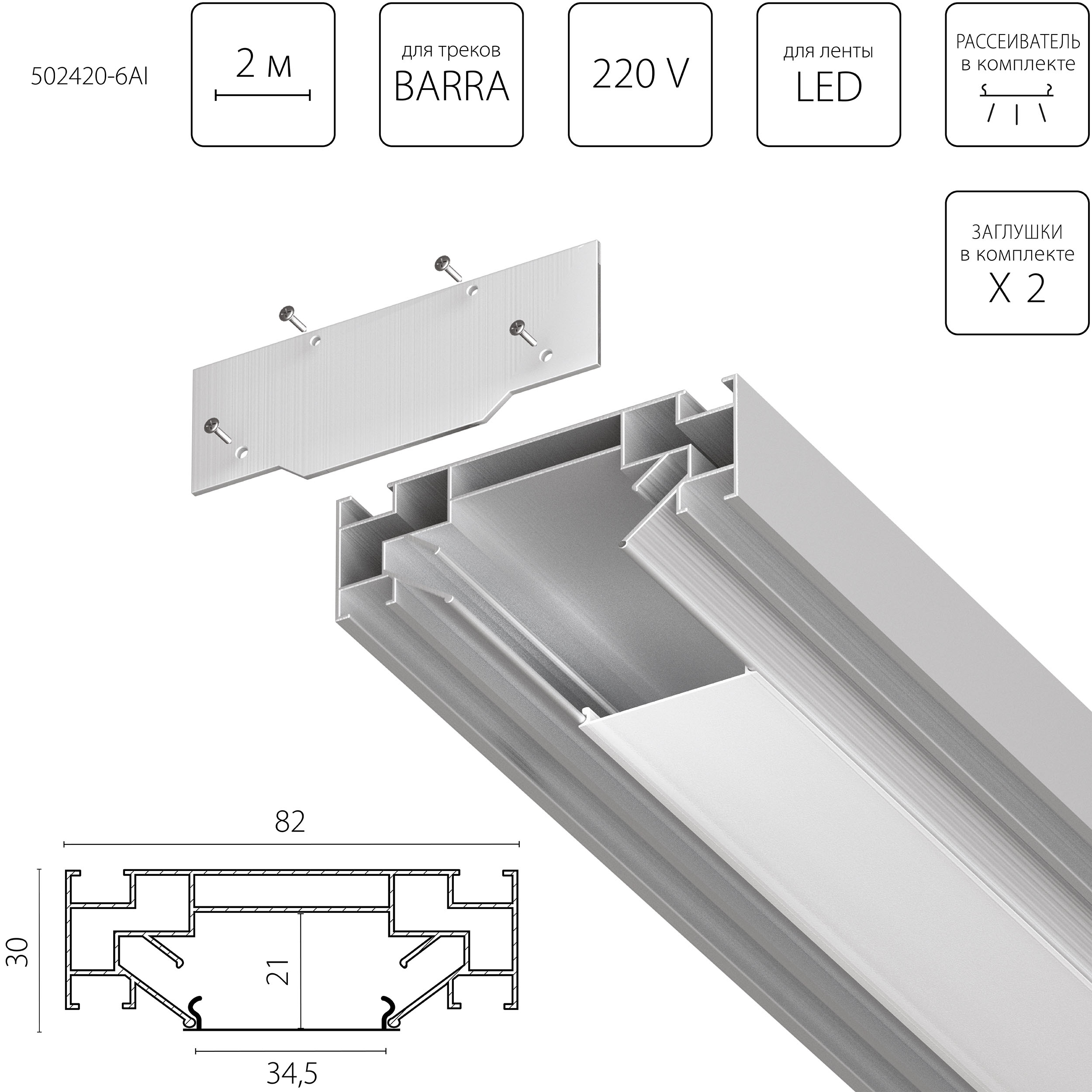 Профиль встраиваемый в натяжной потолок под LED ленту Lightstar Barra Base 502420-6AI в новосибирске