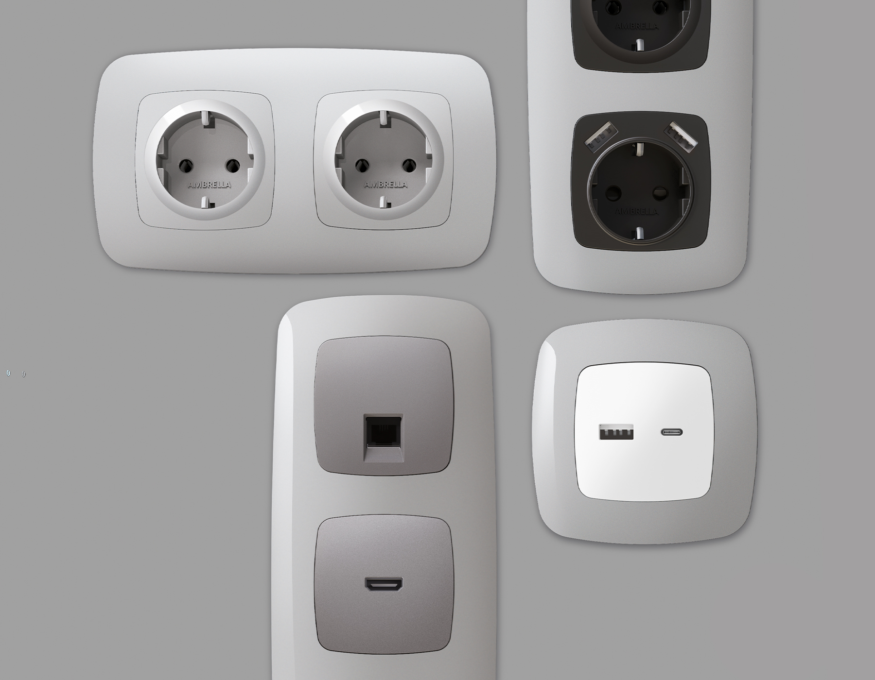 Многогранный ассортимент Ambrella Volt включает в себя механизмы, лицевые панели и рамки, а также комплекты, доступные в различных цветовых решениях. Продукция представлена в модульном исполнении, что позволяет гибко настраивать внешнийвид и функциональность. Вам будет легко заменить лицевую панель, рамку или механизм, найдя идеальное сочетание цветов.