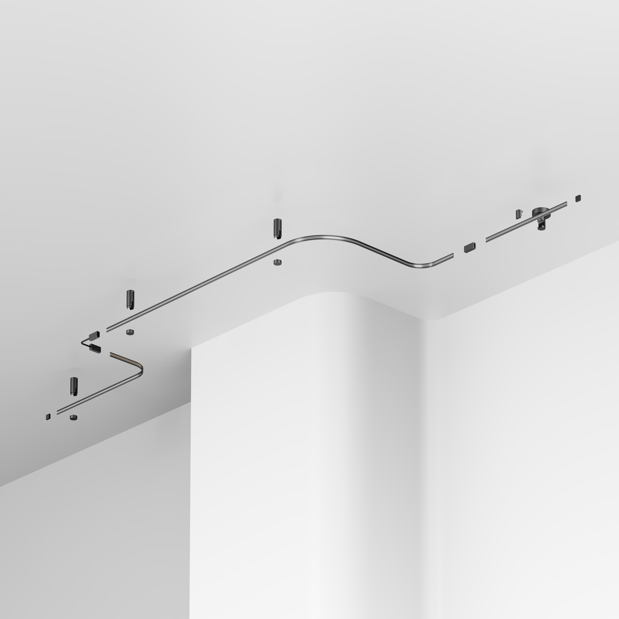 Гибкий шинопровод в черном цвете для создания световых композиций в трековой системе Flexity. Универсальная длина - 5м.