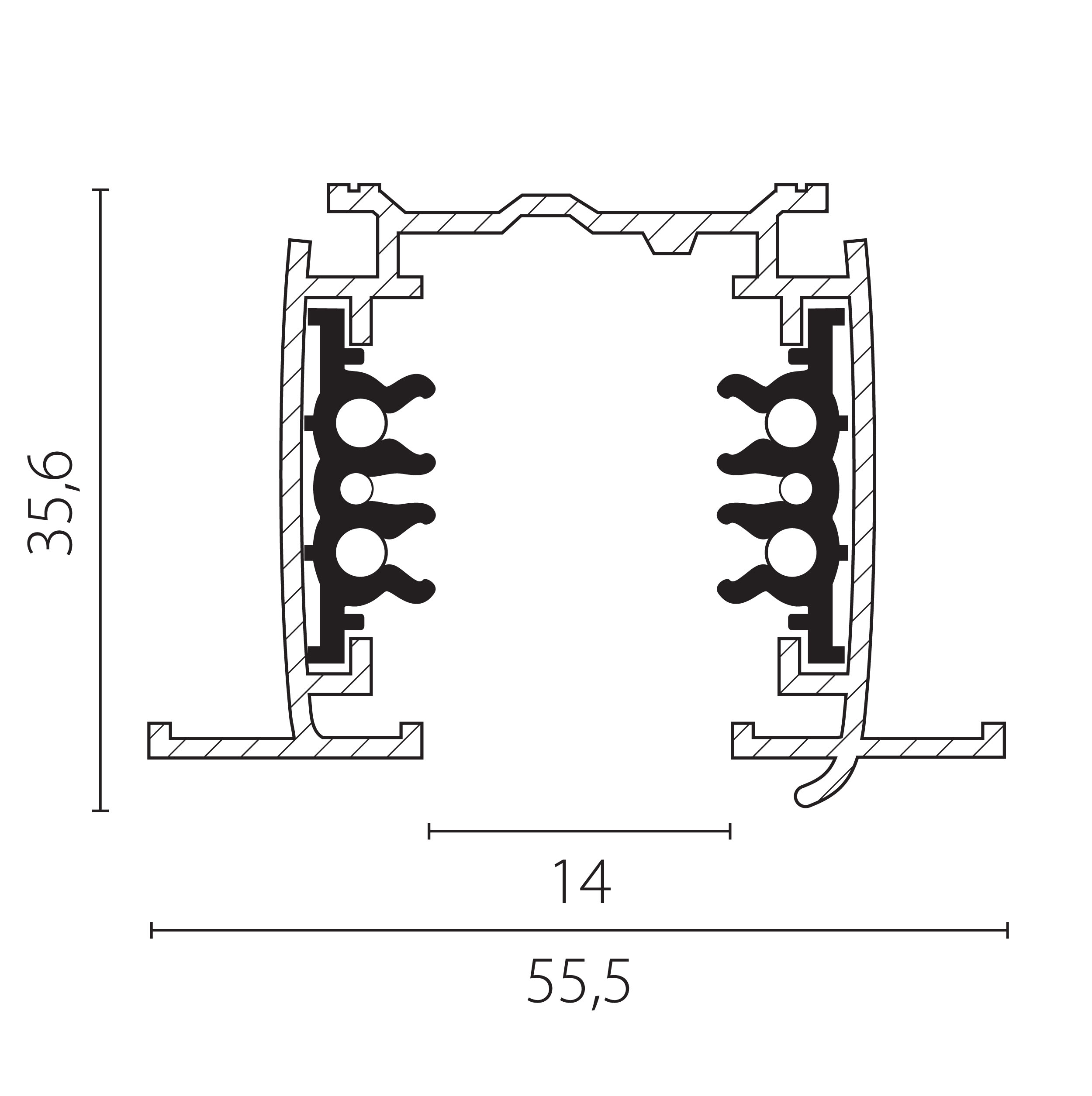 Купить "Шинопровод трехфазный четырехконтактный встраиваемый 2м Lightstar Quattro 503028-R-DALI"