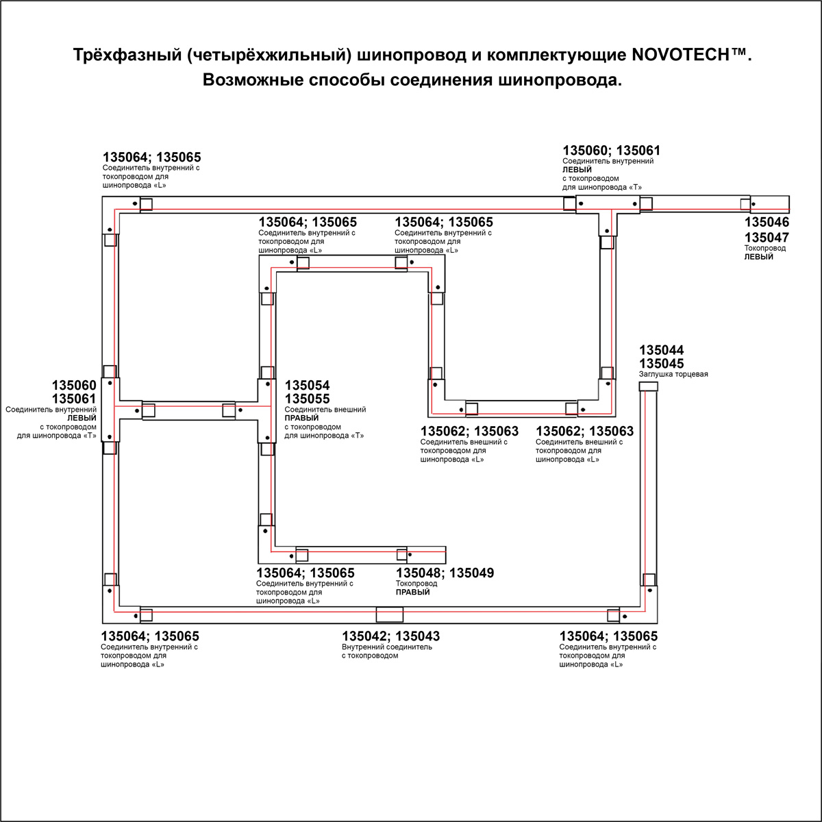 Соединитель T левый внутренний с токопроводом для трёхфазного шинопровода Novotech 135061 в новосибирске