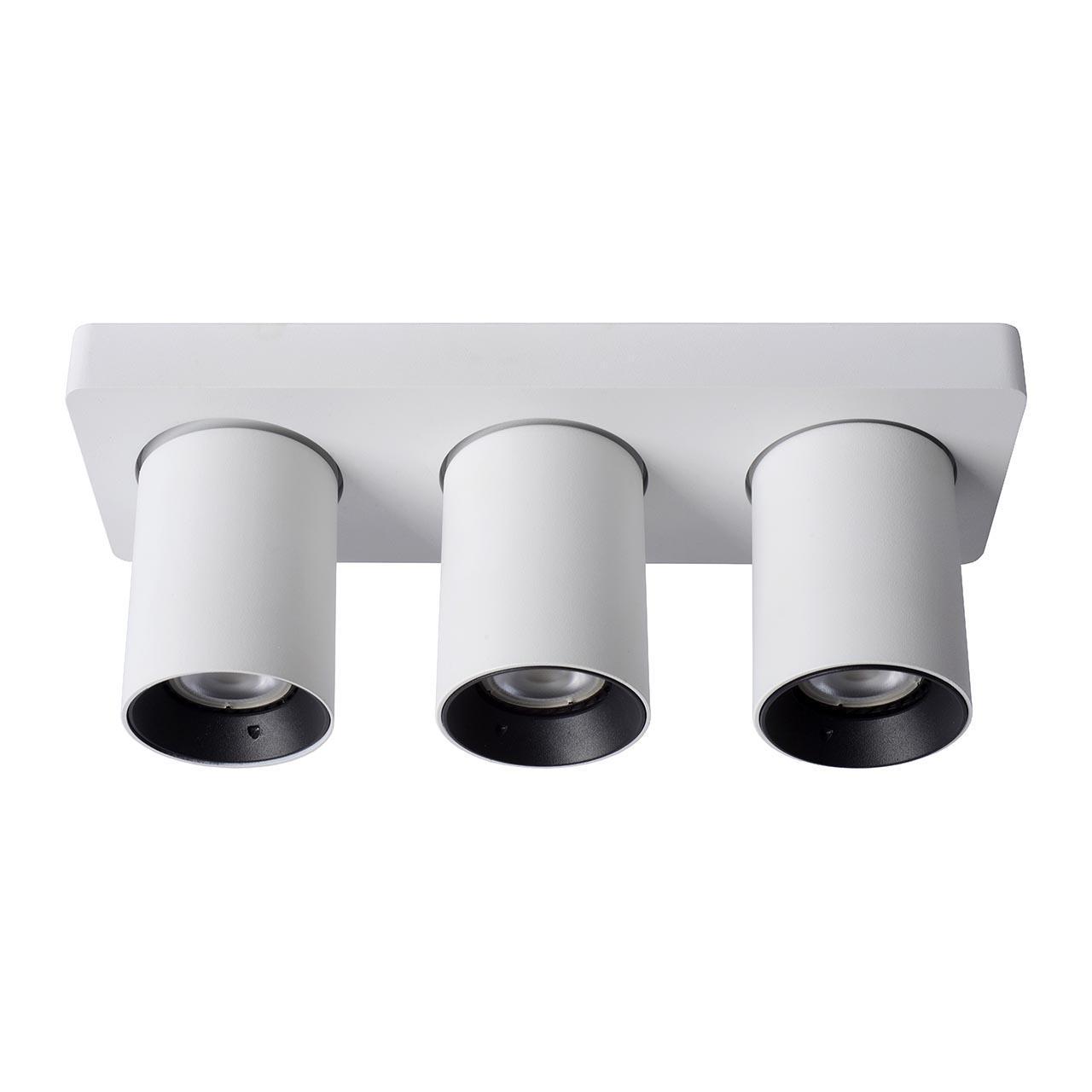 Тройной спот белого цвета с цилиндрическими плафонами, вращающимися на 360 градусов.