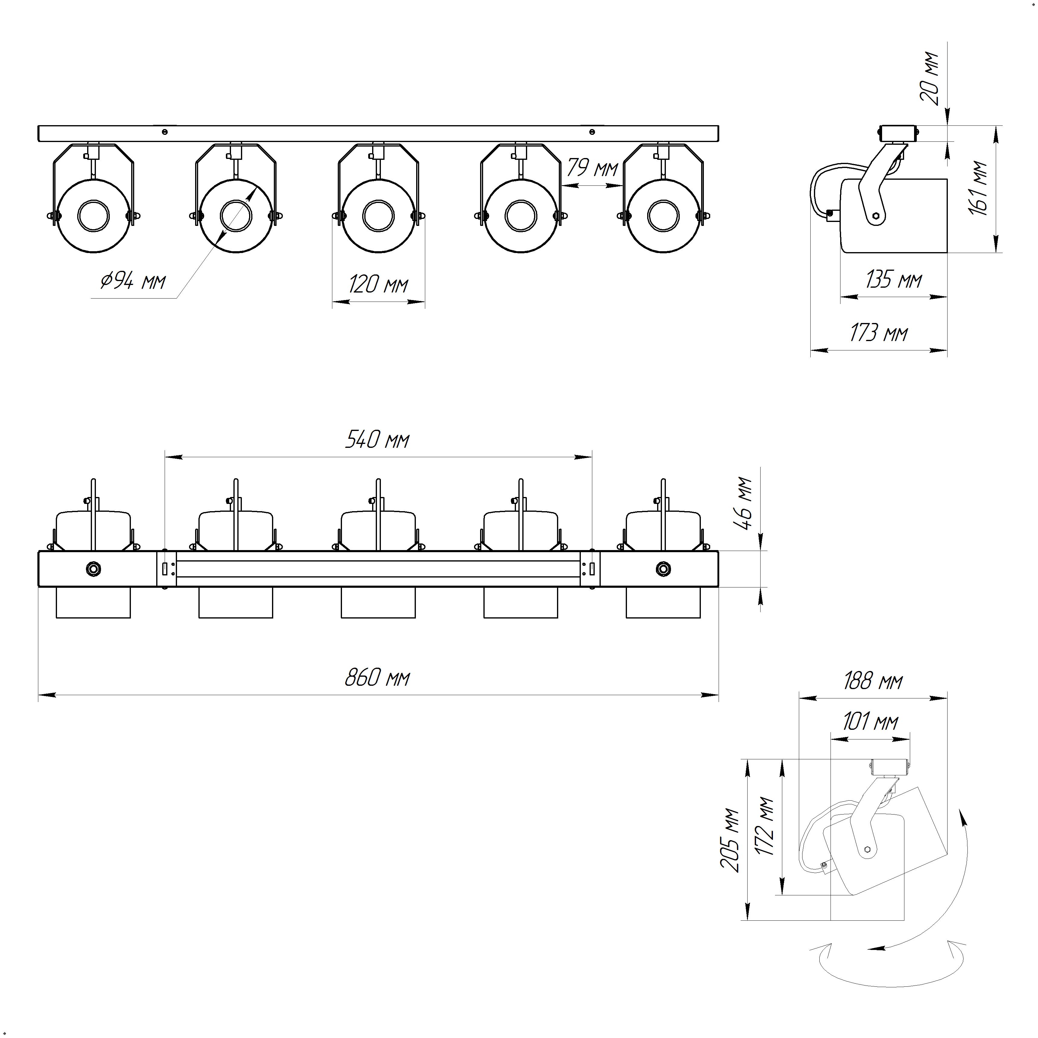 - Количество ламп: 5 шт