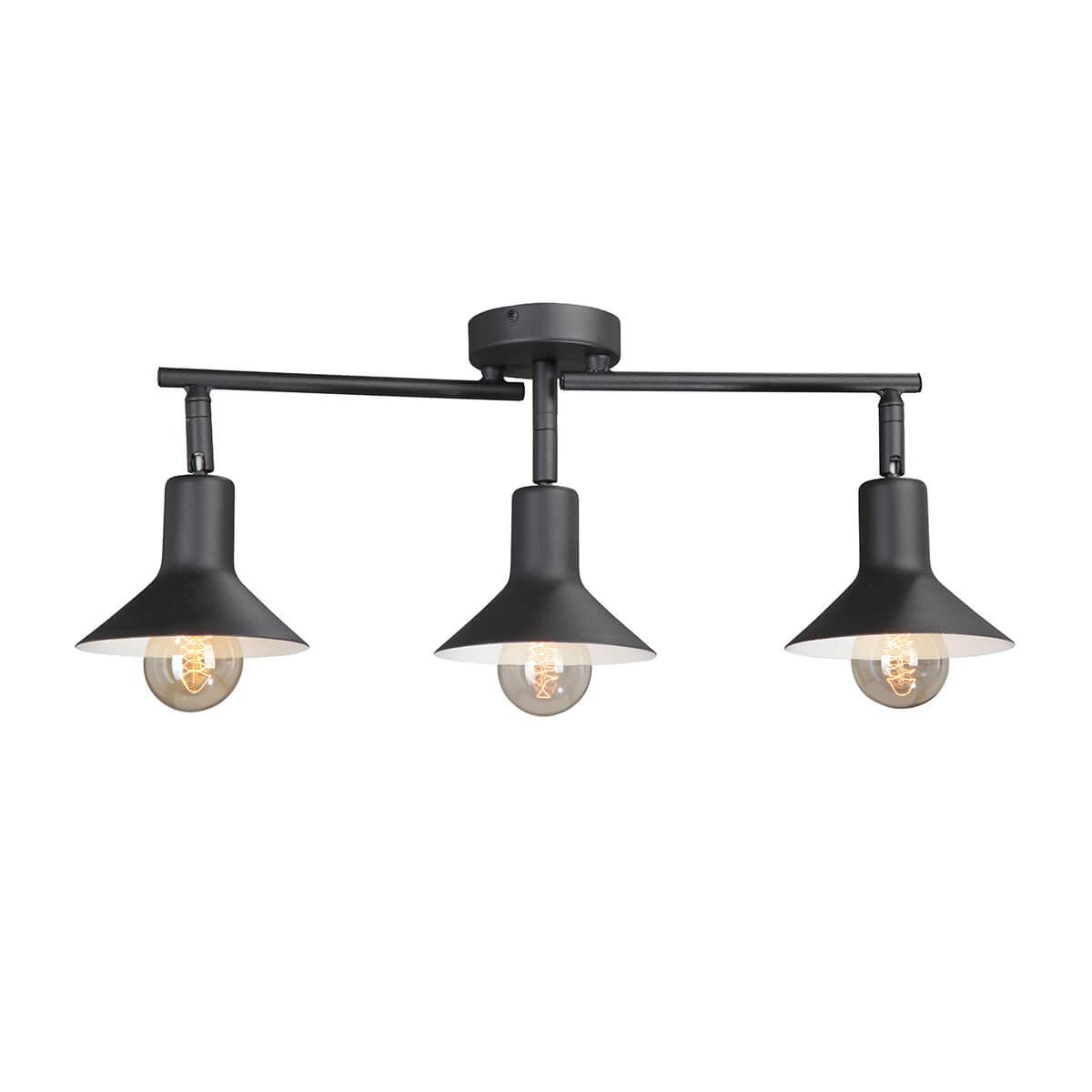 Спот черного цвета. Модель V4808-1/3PL, из коллекции от российского производителя Vitaluce. Светильник состоит из 3 плафонов, форма которых, и выполнены они из металла, корпус светильника изготовлен из из металла.  Производитель рекомендует приобретать для светильника лампочки Накаливания с цоколем E27 мощностью 40W.