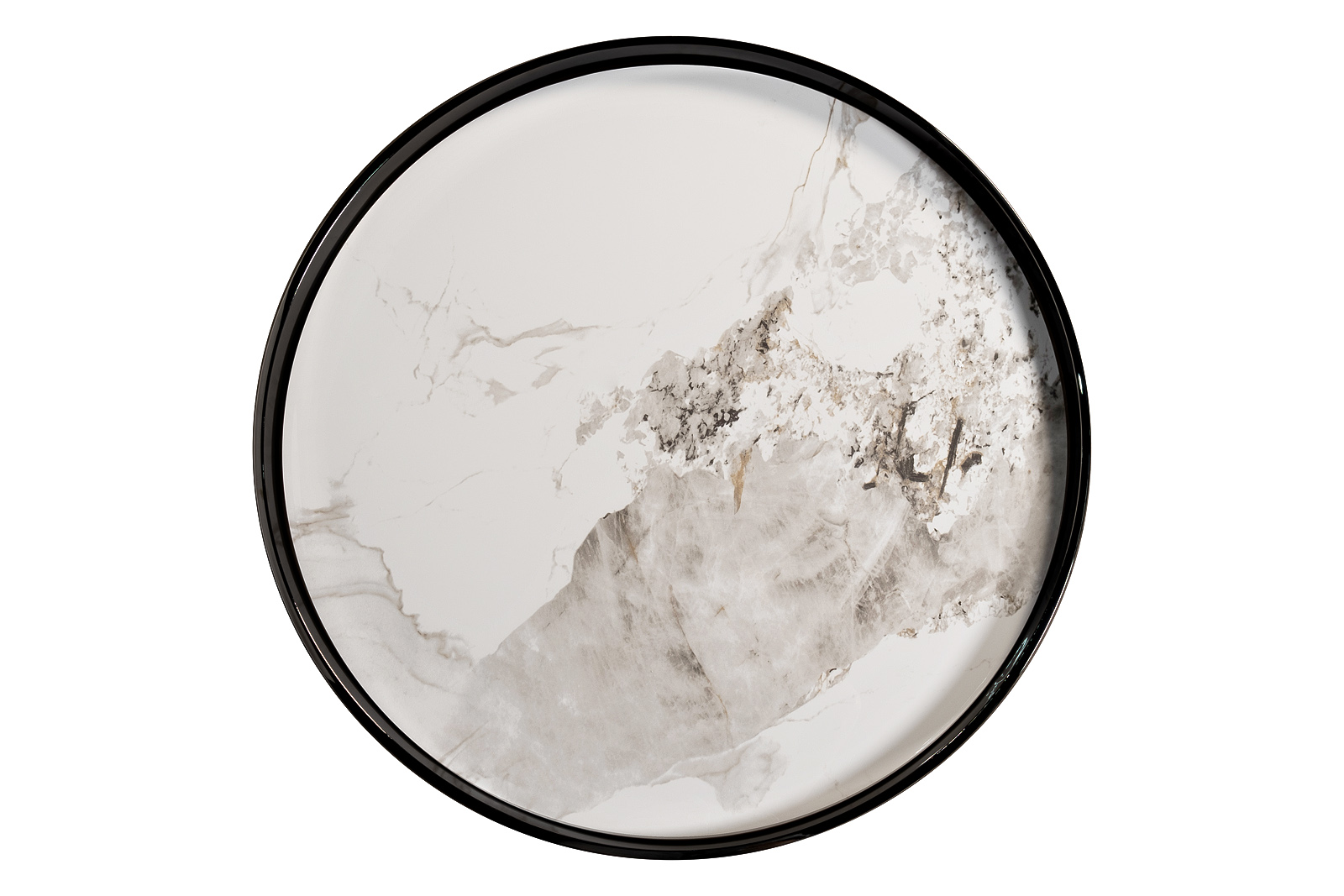 Представляем журнальный столик, в котором белый керамогранит встречается с черным хромом, создавая сдержанное взаимодействие геометричности и природной элегантности. Его круглая столешница из из глянцевого керамогранита с текстурой, отсылающей к благородному мрамору, формирует ощущение легкости и чистоты. Высокий бортик и тонкое основание из нержавеющнй стали цвета черного хрома подчеркивают минималистичный характер и придают предмету графическую выразительность. Этот дизайнерский столик идеально впишется в актуальные интерьеры, где ценятся контрастные сочетания и функциональная эстетика. Он станет стильным акцентом в гостиной, предлагая элегантную поверхность для напитков, книг или декоративных предметов. Это не просто мебель, а манифест эстетического подхода к дизайну, который смело играет с материалами и формами, создавая пространство, наполненное утонченностью и современным шиком. Толщина столешницы - 10мм.