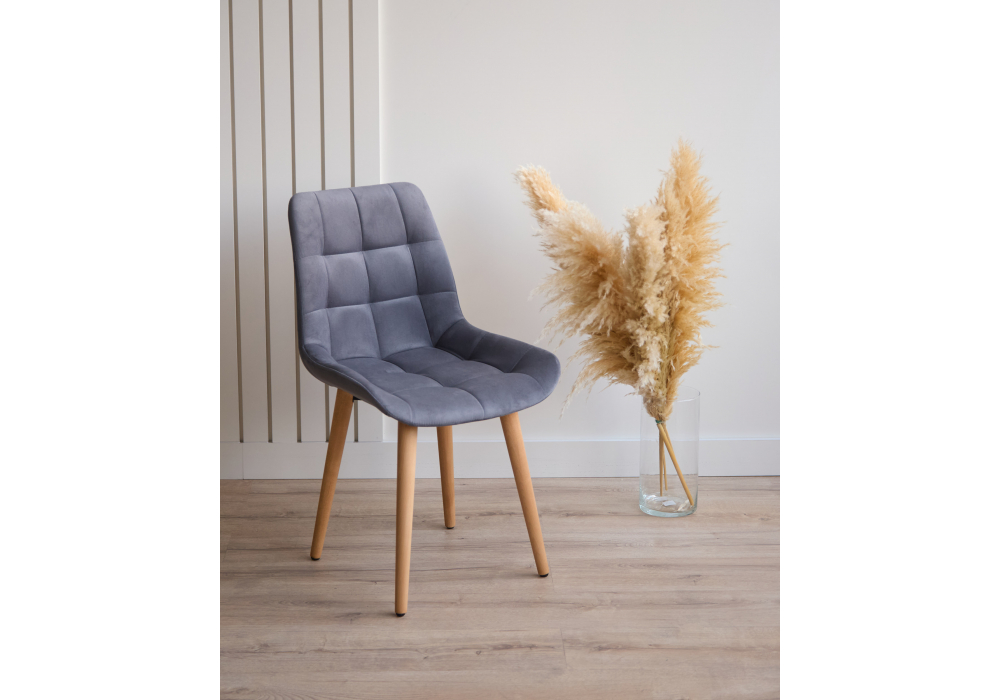 Материал каркаса - дерево; Материал сиденья - велюр; Материал обивки - велюр; Цвет ножек - натуральный; Ширина - 50; Глубина - 60; Высота - 80; Ширина сиденья - 44; Глубина сиденья - 41; Высота сиденья - 48;