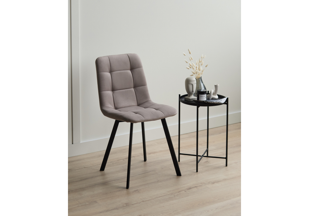 Материал каркаса - металл; Материал сиденья - велюр; Материал обивки - велюр; Цвет ножек - черный; Ширина - 43,5; Глубина - 50; Высота - 87,5; Ширина сиденья - 40; Глубина сиденья - 37,5; Высота сиденья - 49;