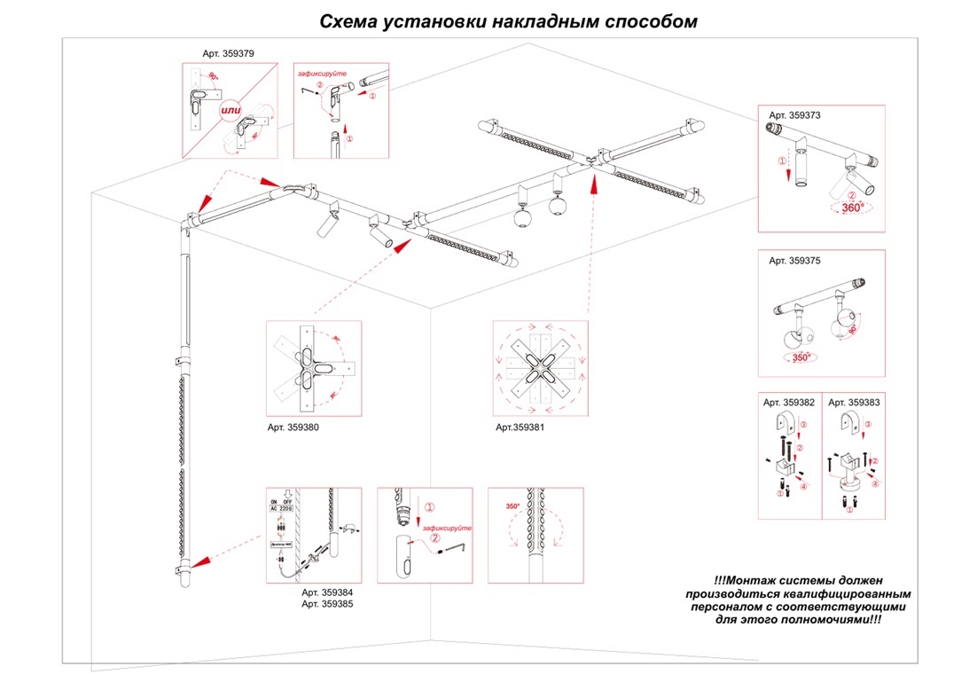 - Направление плафонов: Плафон вниз, В стороны