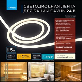 Влагозащищенная лента Apeyron 14,4W/m 60LED/m 5050SMD теплый белый 5M 00-320