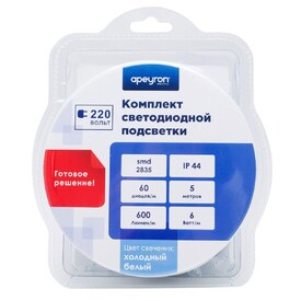 Светодиодная влагозащищенная лента Apeyron 6W/m 60LED/m 2835SMD холодный белый 5M 10-55