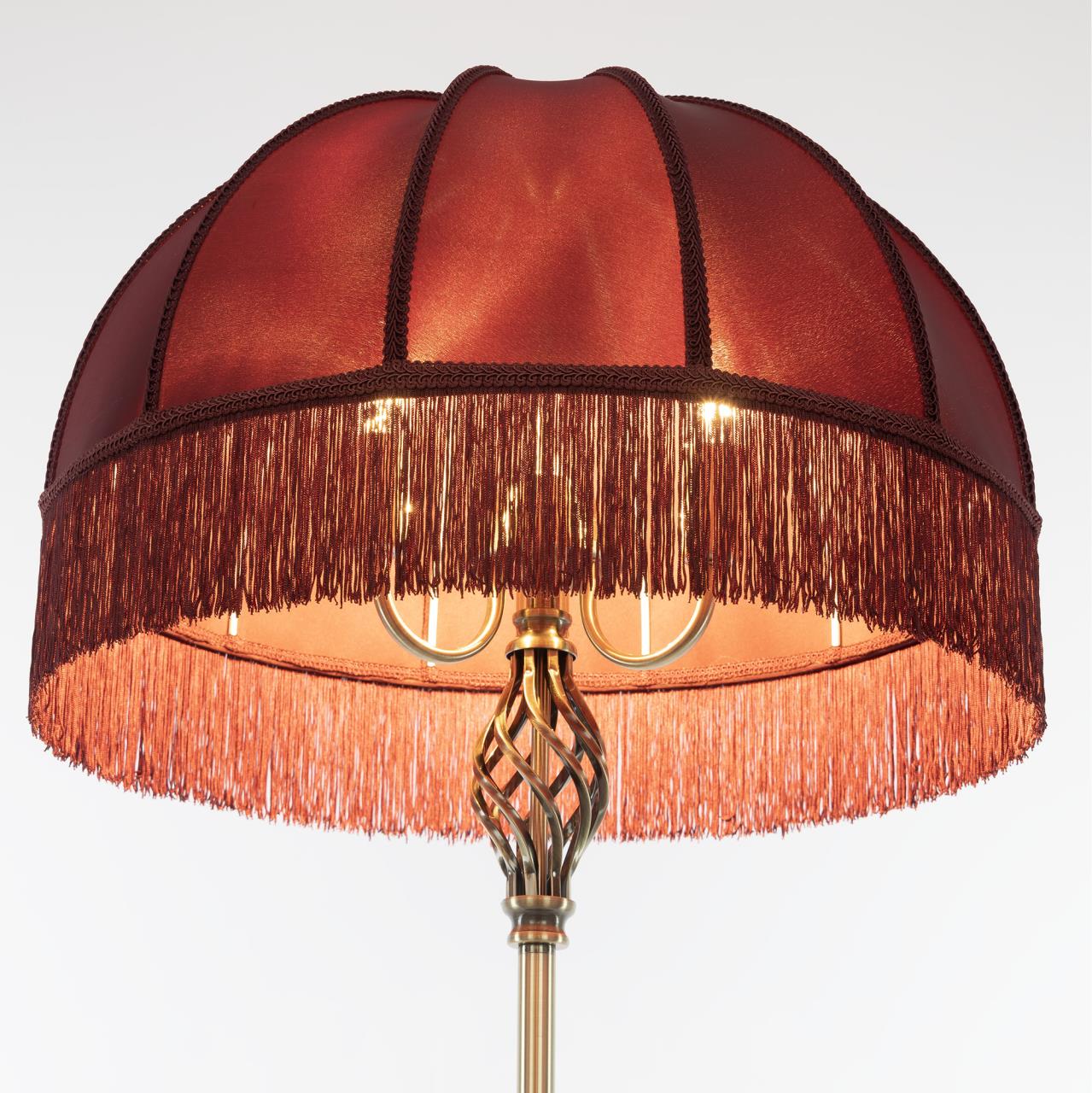 Красивый торшер со столиком от производителя Citilux относится к коллекции Базель выполнен в классическом стиле. Корпус металлический, благородного бронзового цвета. Устойчивое основание украшено искусным орнаментом, верхняя часть стойки с витым декоративным элементом. Абажур из гладкой тёмно-вишнёвой ткани декорирован ажурной тесьмой и обшит бахромой. Удобный круглый столик изготовлен из закалённого тонированного стекла. В напольном светильнике 3 лампы с цоколем Е14 максимальной мощностью для ламп накаливания 60Вт (в комплект не входят, приобретается отдельно), светодиодные лампы можно устанавливать более яркие. Высота светильника 1,64м, диаметр абажура 51см, диаметр основания 26см, сетевой шнур длиной 2м, с напольным выключателем , страна бренда Дания . Купить модель CL407933T спешите в интернет магазине 220svet.ru