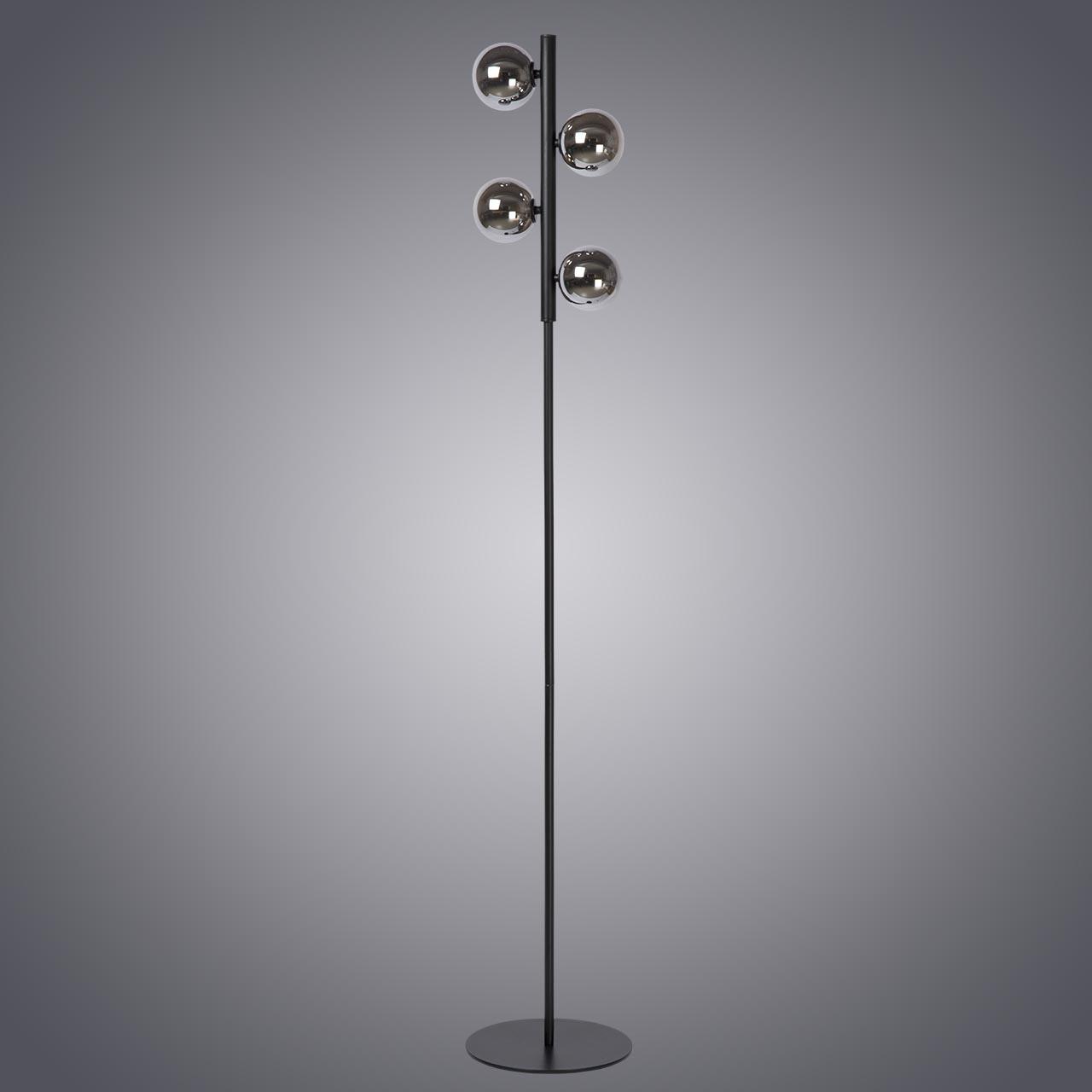 Шикарная модель черного, серого цвета произведена из металла. Плафон - круглый, выполнен из стекла. Стиль торшера - современный,  его можно использовать для большого зала,  создаст уют и камерность, может служить, как для декоративного освещения, так и для функционального освещения места для чтения книги, например.