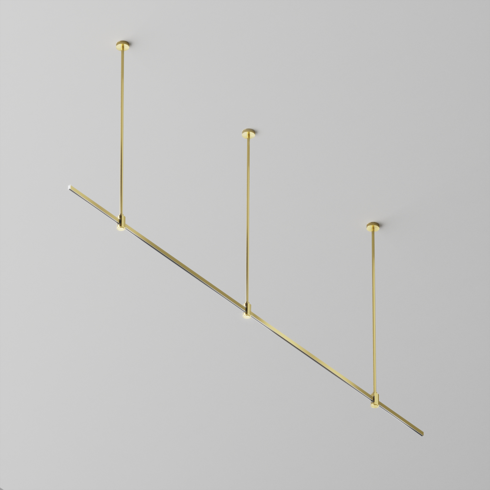Подвесная конструкция системыFlarityпрямойформыстросовыми подвесами . Светильники и блоки питания приобретаются отдельно, в зависимости от требуемого проекта.