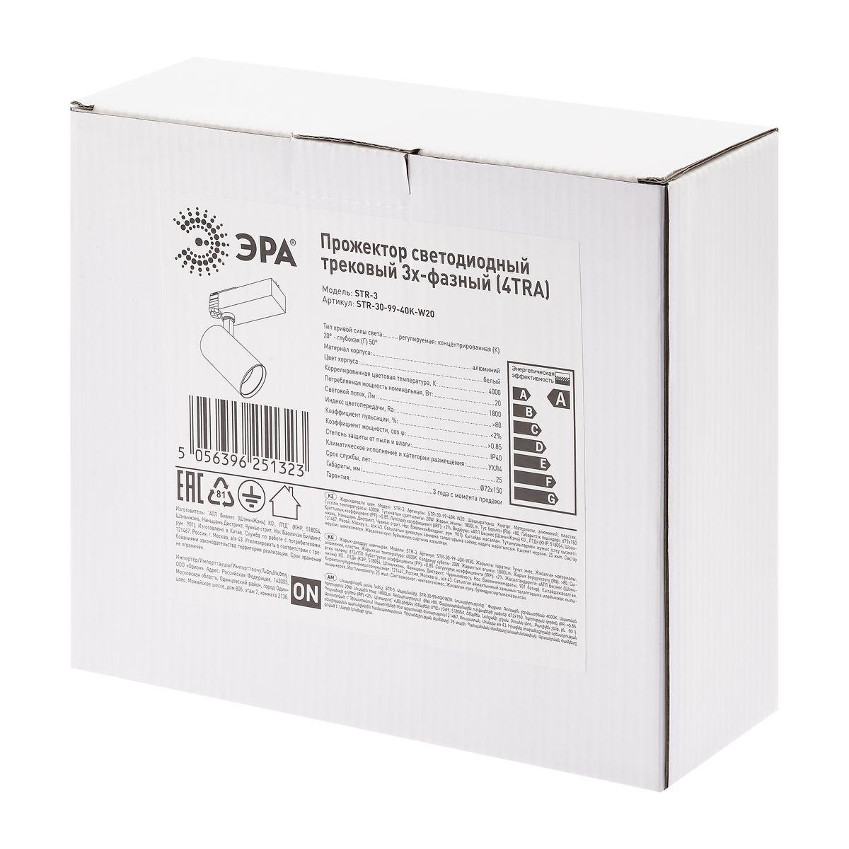 Купить "Трековый светодиодный светильник ЭРА STR-30-99-40K-W20 Б0049784"