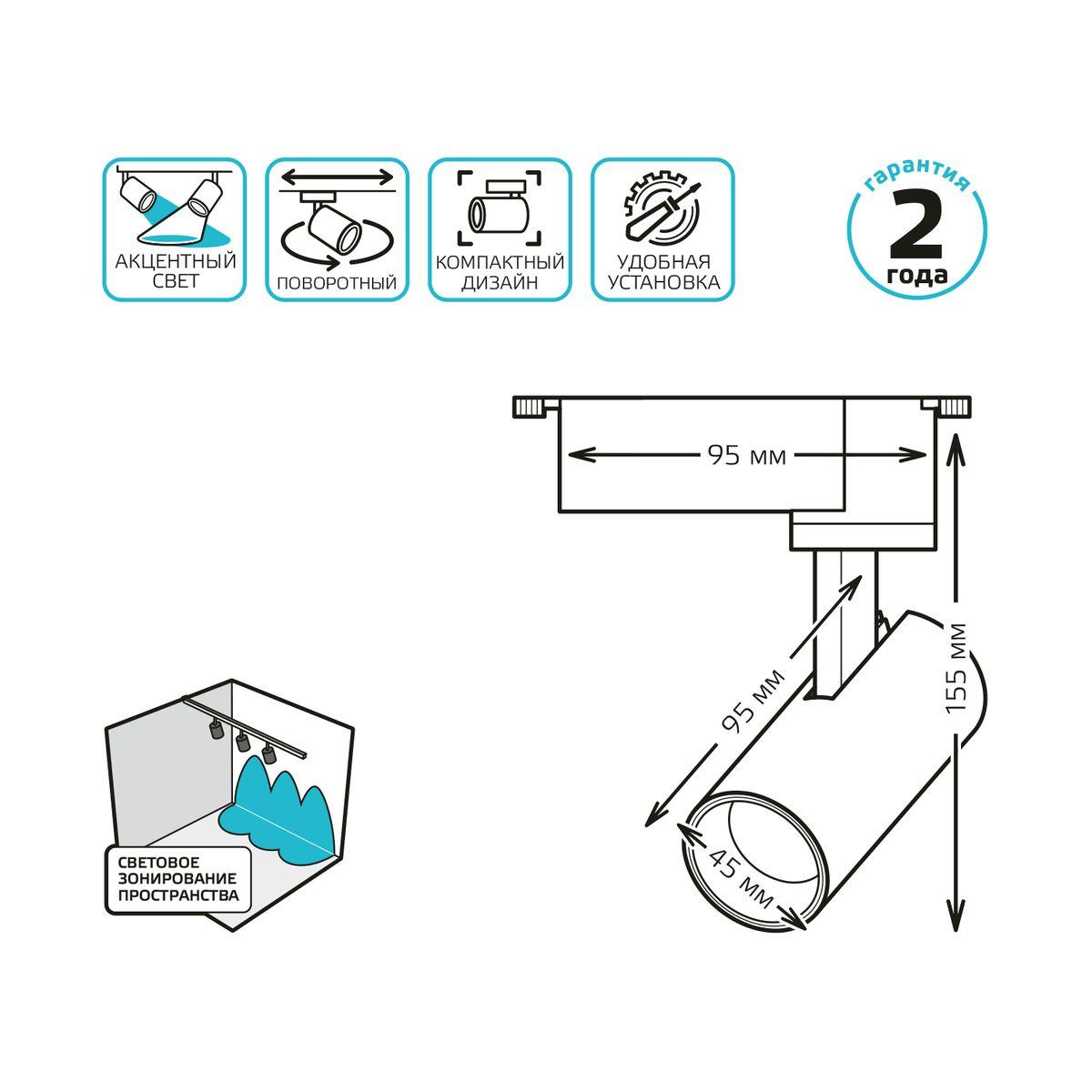 Трековый светодиодный светильник Gauss Track Light Led TR075 в новосибирске