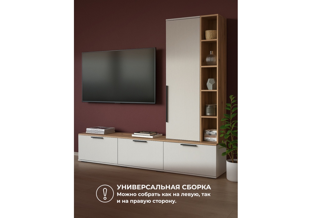 Купить "ТВ-тумба Woodville Филеста белый / дуб вотан 664895"