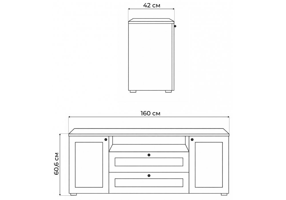 Материал каркаса - ЛДСП; Ширина - 160; Глубина - 41,9; Высота - 60,6;
