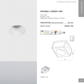 Точечный встраиваемый гипсовый Arte Lamp Invisible A9286PL-1WH
