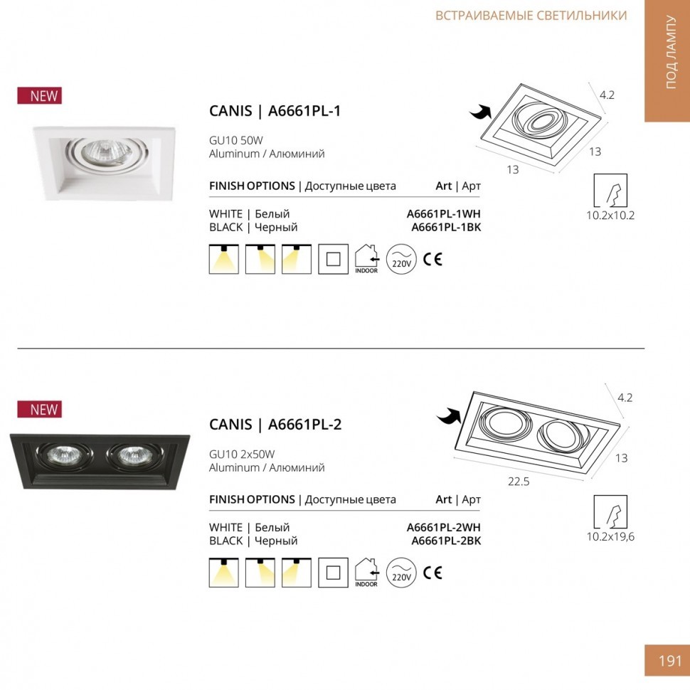 Встраиваемый светильник Arte Lamp A6661PL-2WH в новосибирске