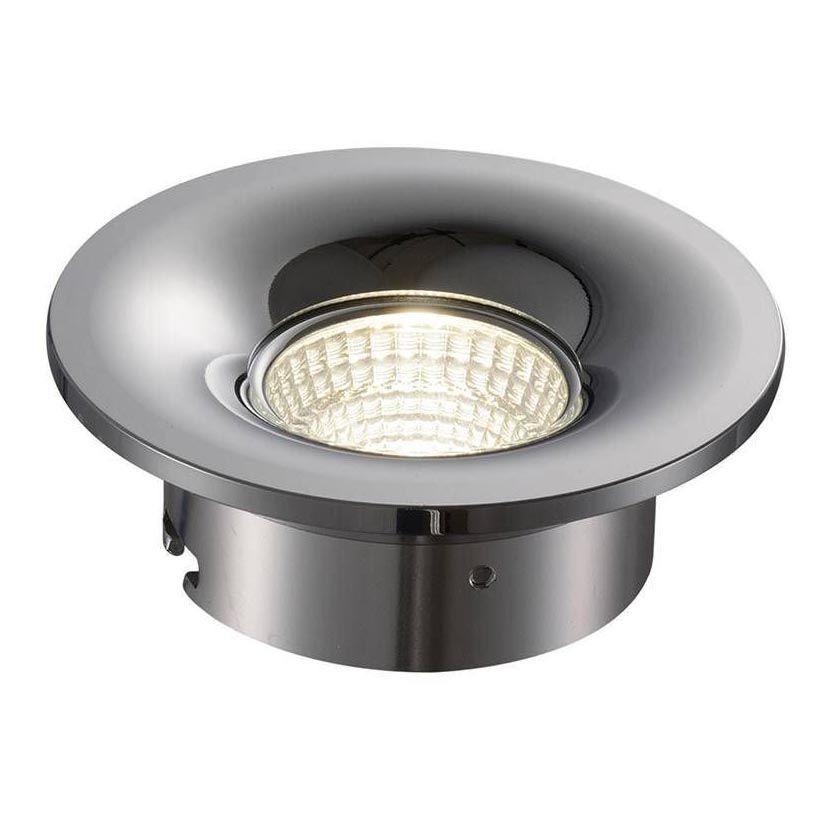 Круглый встраиваемый светильник с хромированной глянцевой поверхностью.