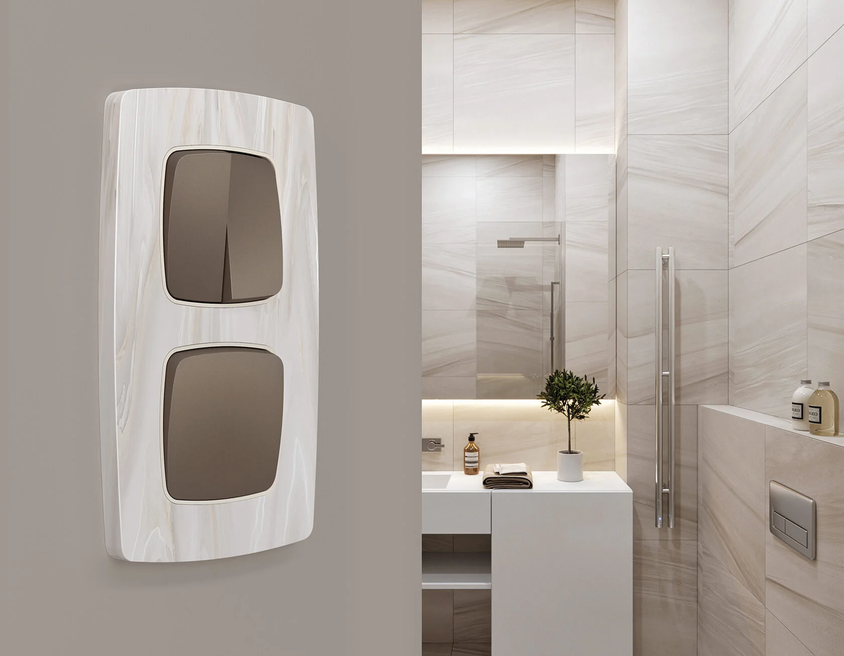 Многогранный ассортимент Ambrella Volt включает в себя механизмы, лицевые панели и рамки, а также комплекты, доступные в различных цветовых решениях. Продукция представлена в модульном исполнении, что позволяет гибко настраивать внешний вид и функциональность. Вам будет легко заменить лицевую панель, рамку или механизм, найдя идеальное сочетание цветов.